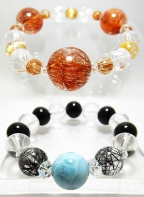 反対に、落ち着きをもたらす青色とブラックのブレスレットは