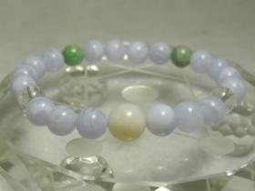 ブルーレースアゲートを気に入っていただき、ブルーレースアゲートをメインに翡翠とヒマラヤガネーシャ水晶でお作りいたしました
