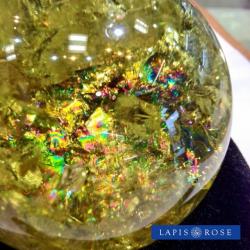 メタモルフォーゼスと呼ばれる白色半透明の水晶に、ガンマ線照射などの処理を施すことで、金色に輝く石となります。